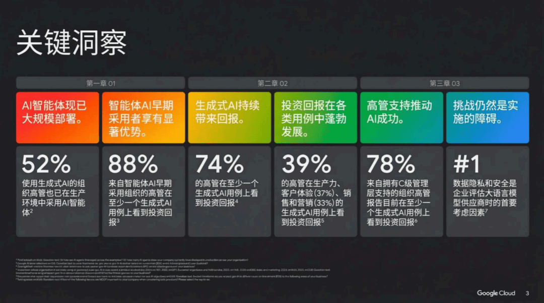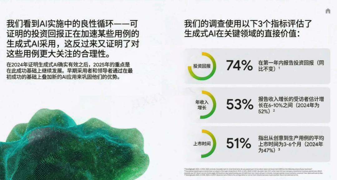 此前Google Cloud发布《AI 2025投资报答:智能体若何解锁下一波AI贸易价值》研究演讲,我们必需问它能否让人们更高效,更能培育客户忠实度,39%的企业更是摆设了跨越10个AI智能体,成为企业解锁AI ROI的焦点径。无需依赖手艺部分,让营销、财政、运营的营业专家能自从打制AI帮手,更实现了“有温度的办事”,一直将AI智能体做为焦点载体的主要缘由。从实和落地中发觉。